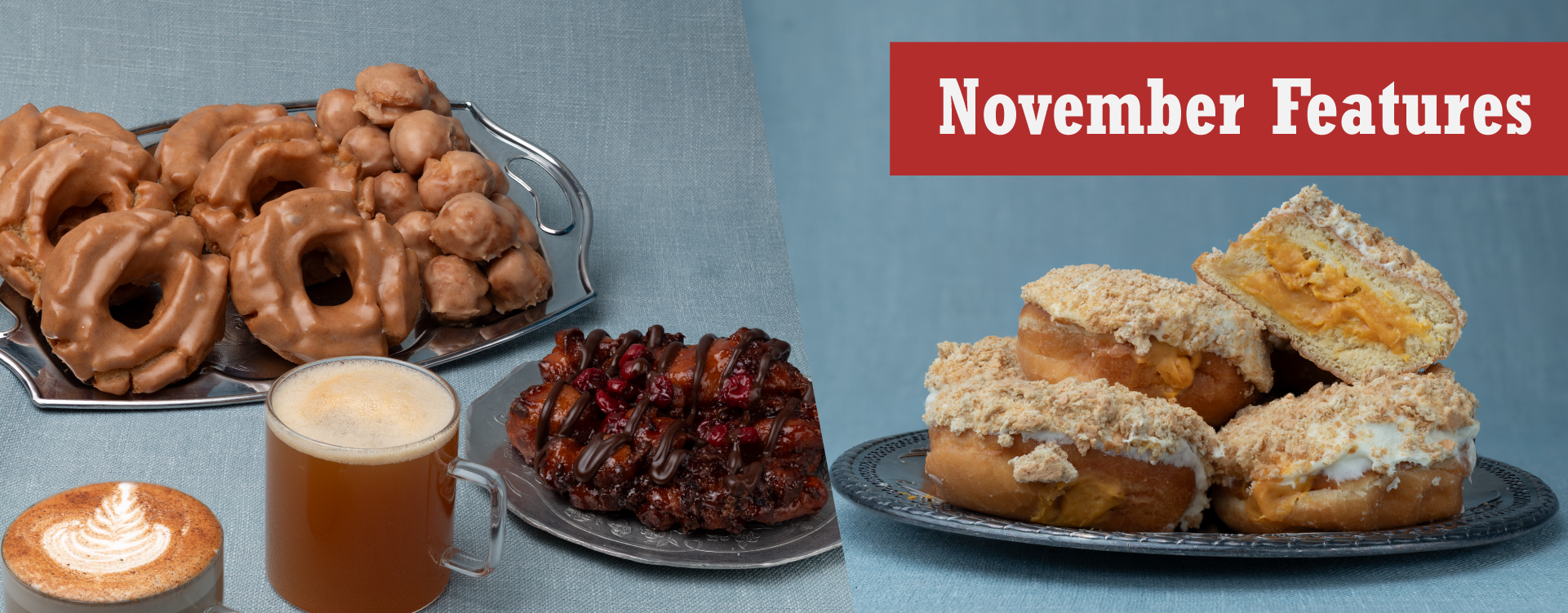Our coziest old fashioned returns to compliment your favorite fall beverage. Available throughout November!